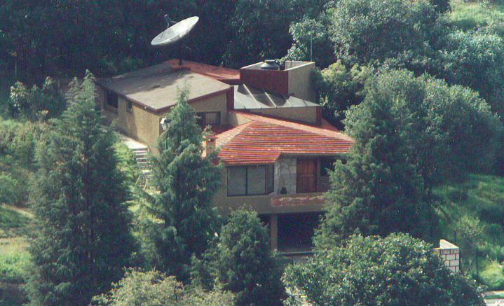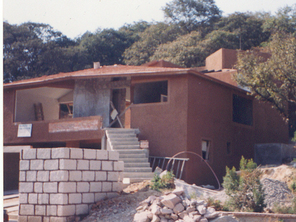Casa en terreno a desnivel ascendente, en estilo mexicano moderno.